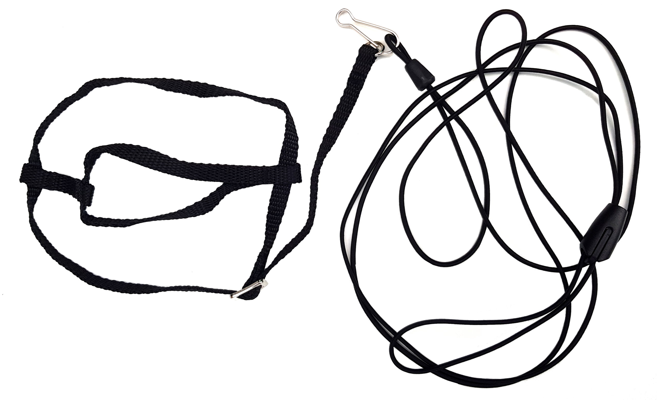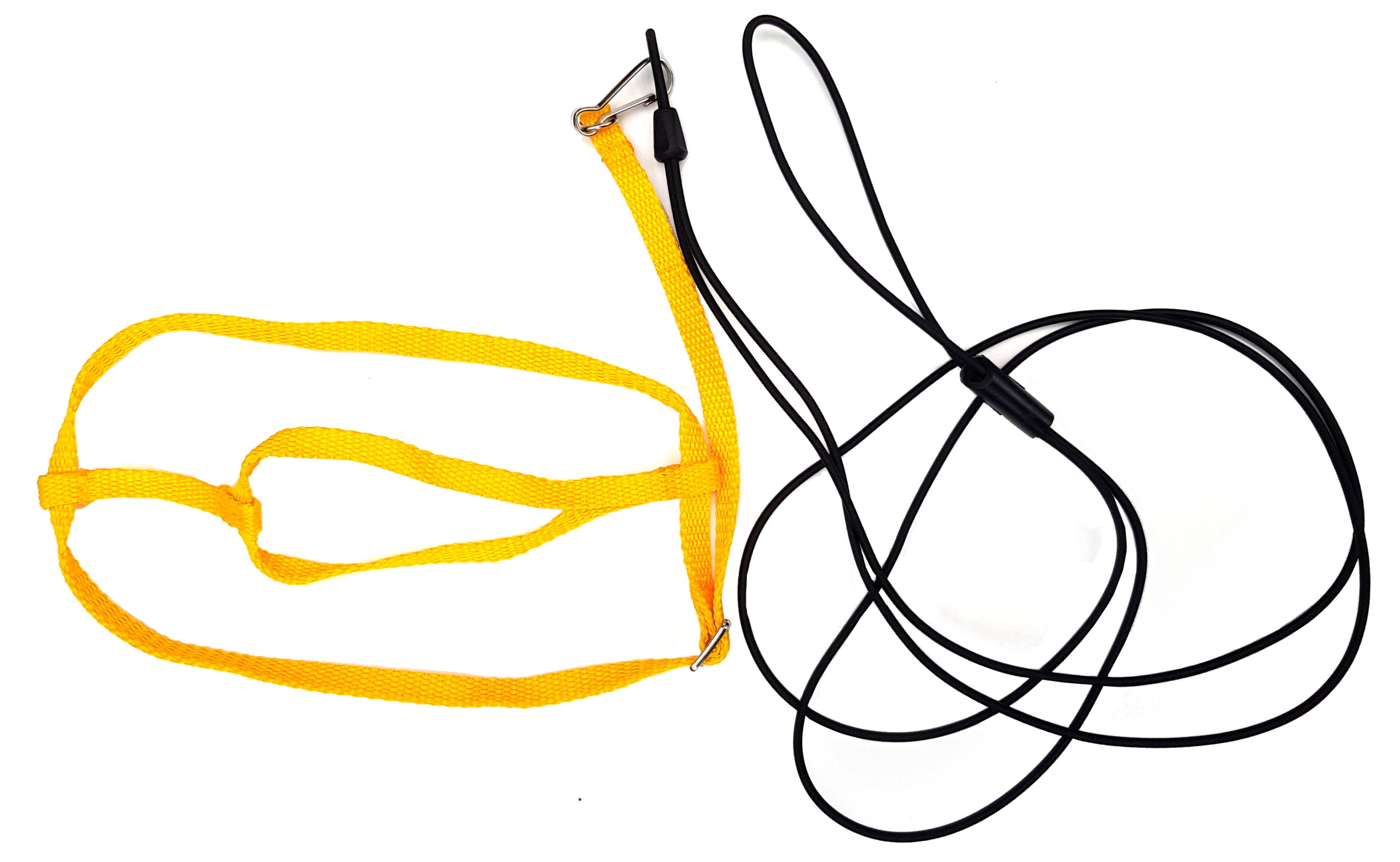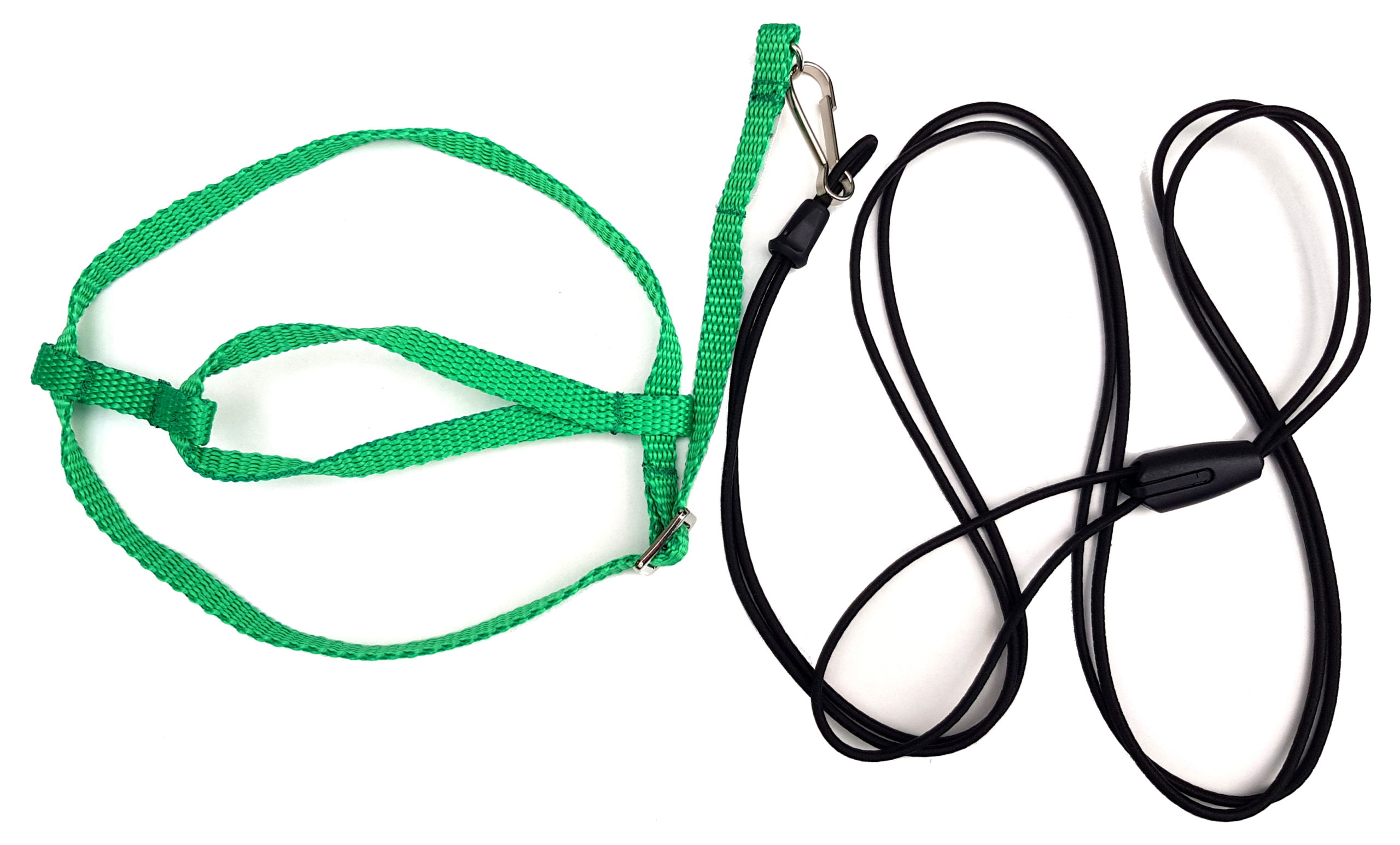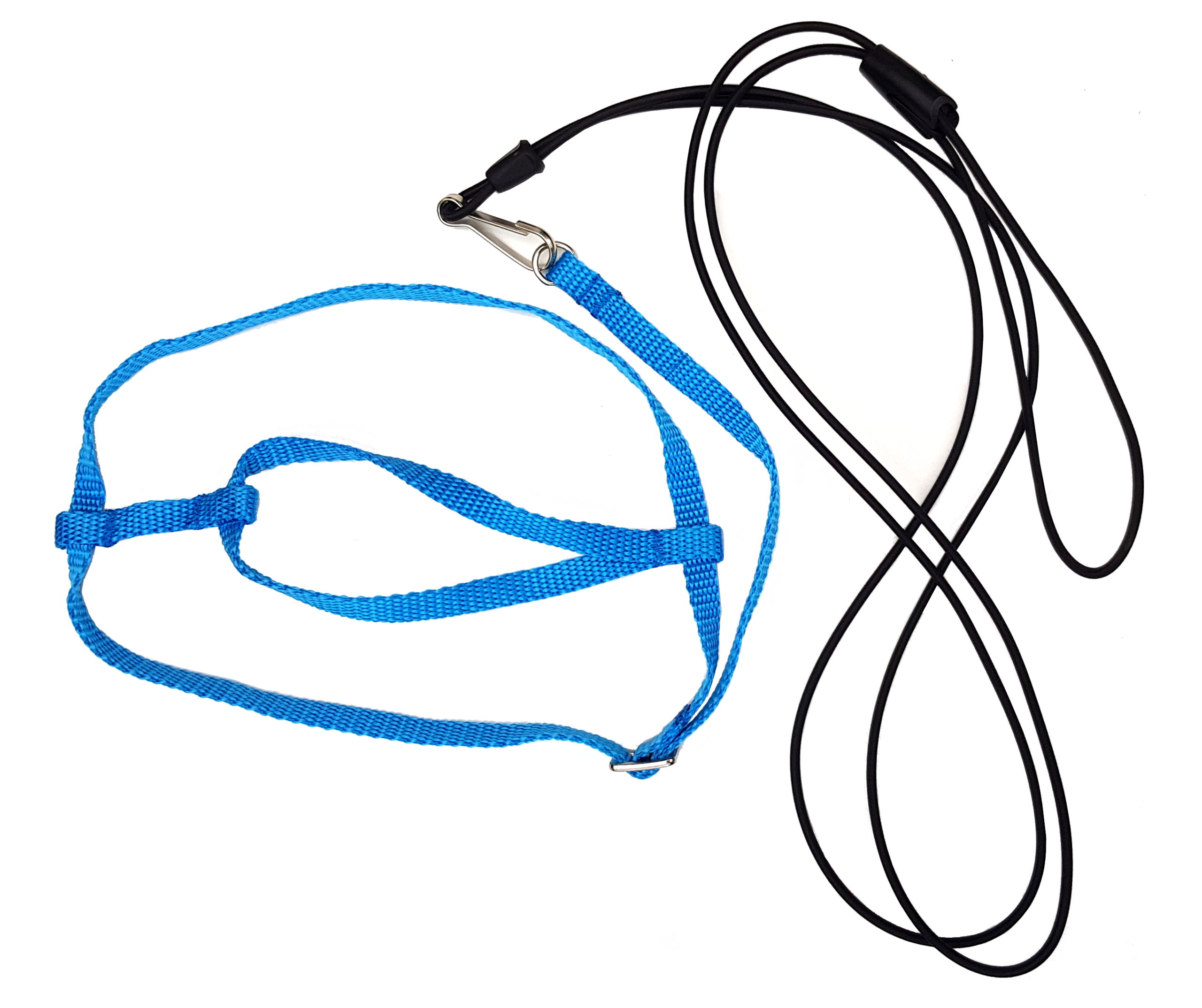 Rozmiar M jest w komplecie z elastyczną podwójną smyczą o grubości 3 mm i długości 120-130 cm. Smycz wykonana jest z rozciągliwej linki amortyzującej typu Bungee Shock Cord z od kilku do kilkunastu lateksowymi rdzeniami w poliestrowym oplocie. Smycz nie jest połączona z szelkami na stałe. Jest odpinana, dzięki czemu można ją szybko wymienić na awaryjną w razie przegryzienia na spacerze.