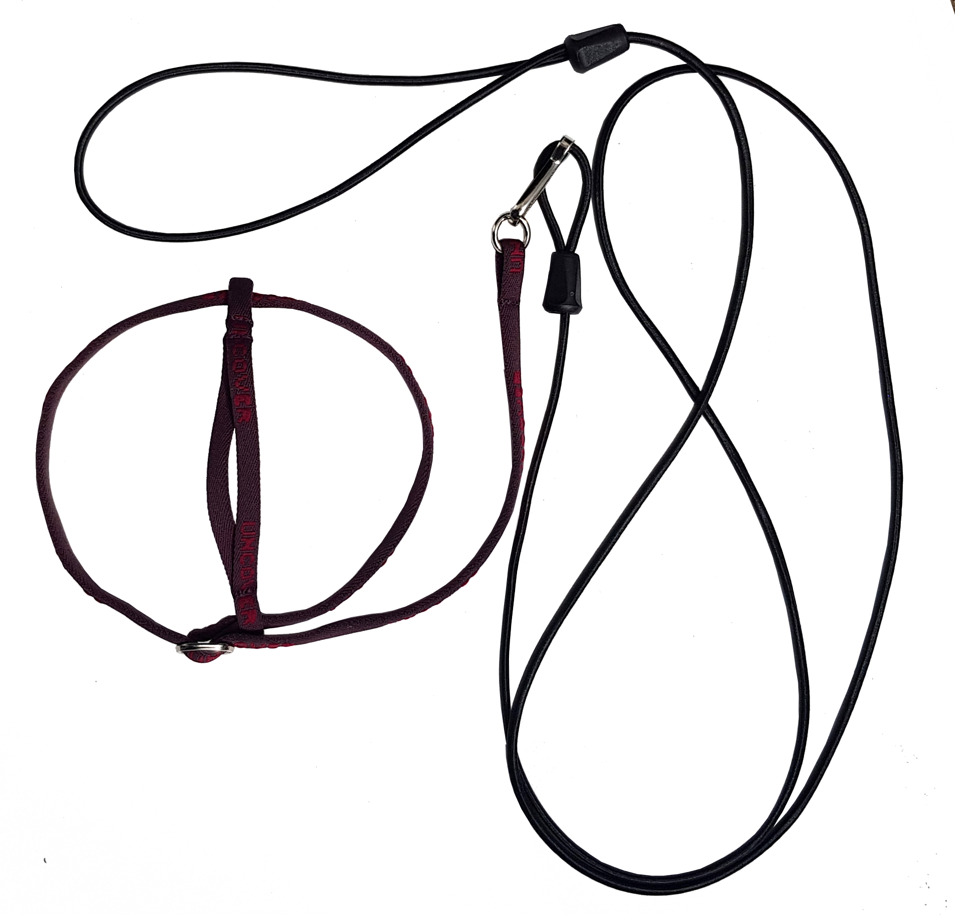 Rozmiar XS jest w komplecie z około 110-120 cm długości elastyczną smyczą o grubości 3 mm. Smycz wykonana jest z rozciągliwej linki amortyzującej typu Bungee Shock Cord z od kilku do kilkunastu lateksowymi rdzeniami w poliestrowym oplocie. Smycz nie jest połączona z szelkami na stałe, lecz jest odpinana, dzięki czemu można ją szybko wymienić na awaryjną w razie przegryzienia na spacerze.