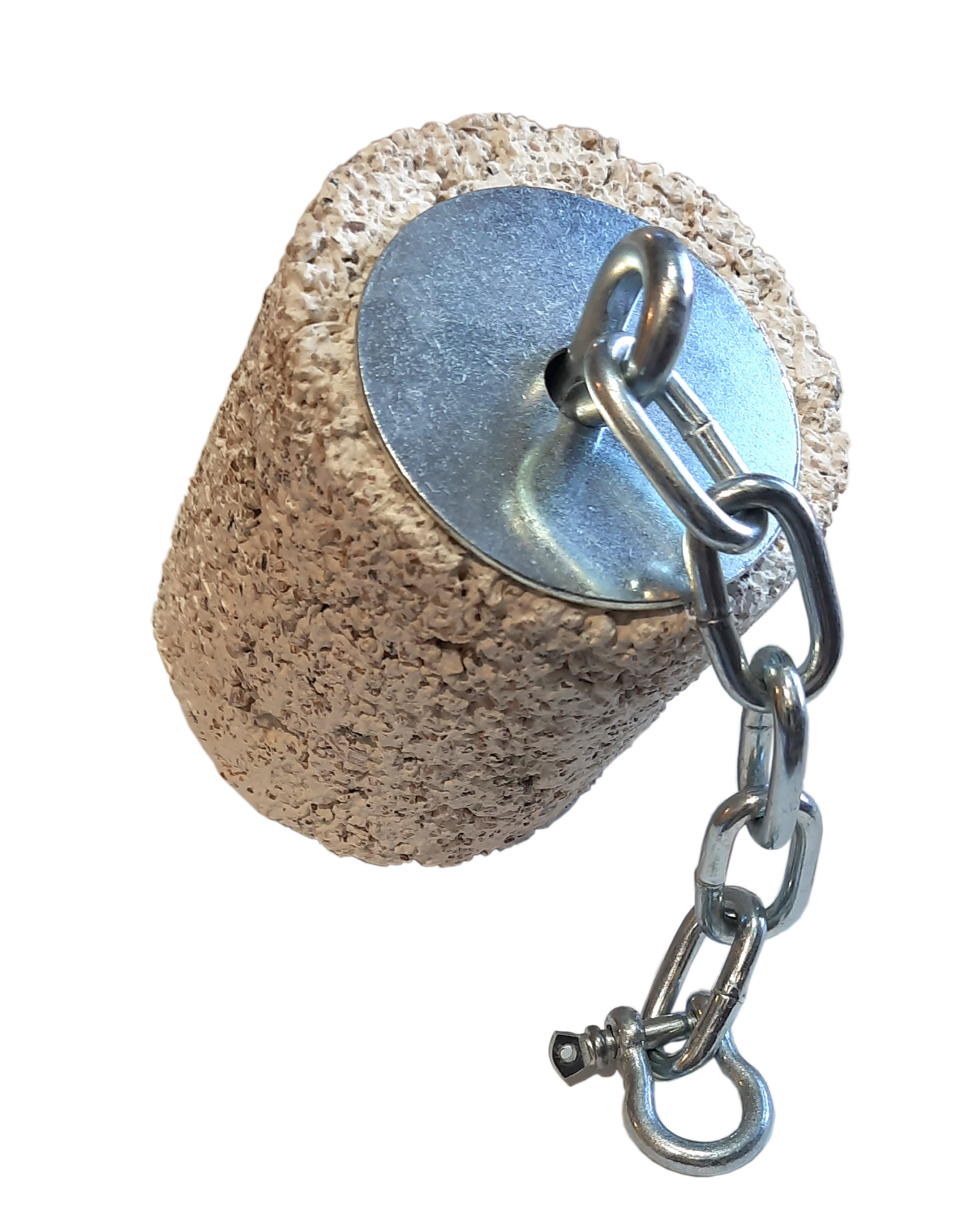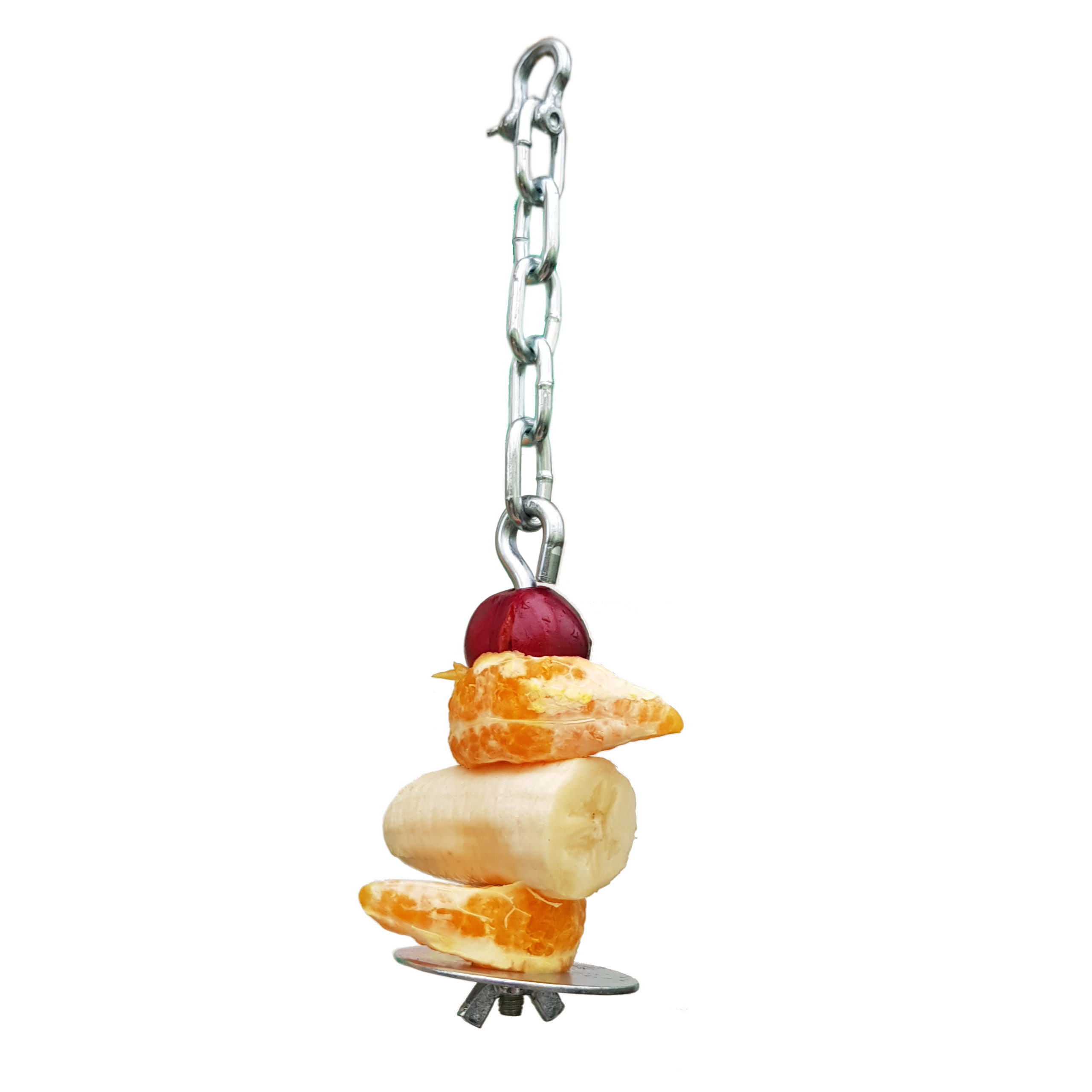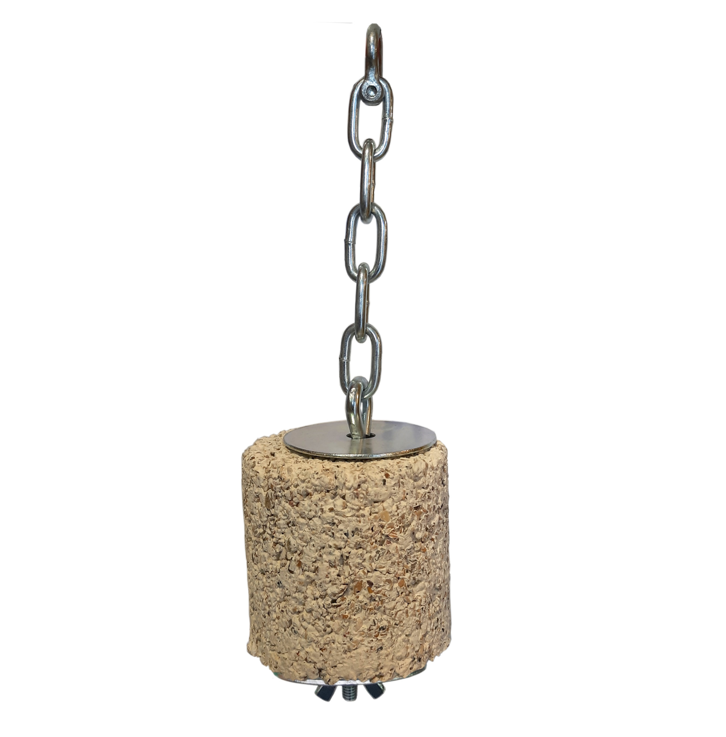 Zawieszka składa się z długiej śruby o średnicy 0,6 cm na grubym łańcuchu o średnicy 0,4 cm i grubości 1,6 cm, z bezpieczną skręcaną szeklą, dwóch podkładek o średnicy 5 cm i nakrętki motylkowej. Całość ma długość 23 cm. Można na niej zawiesić blok mineralny z dziurką o wysokości do 10 cm lub nadziać owoce i warzywa. Blok można od góry przykryć drugą podkładką.